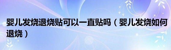 大家好,乐天来为大家解答以下的问题,婴儿发烧退烧贴可以一直贴吗,婴儿发烧如何退烧很多人还不知道,现在让我们一起来看看吧!