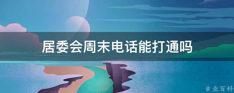 居委会周末电话可能无法打通。居委会属于社区事务受理服务中心,其工作时间一般为周一至周五的9点至17点,周末不上班,所以周末居委会电话可能无法打通。居民委员会是居民自我管理、自我教育、自我服务的基层群众性自治组织。