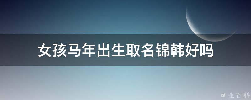 女孩马年出生取名锦韩好。锦字本义指有彩色花纹图案的丝织品,后用来代指美好的事物,引申指美好的。还用来代指花样多而美好的东西。用作人名有锦绣前程、锦上添花、锦绣江山的寓意。韩字本义指井垣,用作人名有气势磅礴、才华、聪明的寓意。