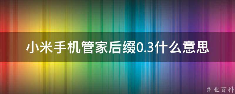 小米手机管家后缀0.3表示的是软件版本号。这个后缀数字通常表示该版本的更新时间、修复的bug数量、新增功能等信息。如果使用的是小米手机,建议下载安装最新版的小米手机管家,以确保获得最新的功能和安全更新。