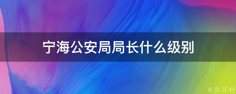 宁海公安局局长县处级正职级别,公安局的局长通常是由县委常委或副县长兼任的。宁海县公安局是宁海县人民政府的重要部门之一,主要负责全县的社会治安工作,为人民群众提供安全保障。