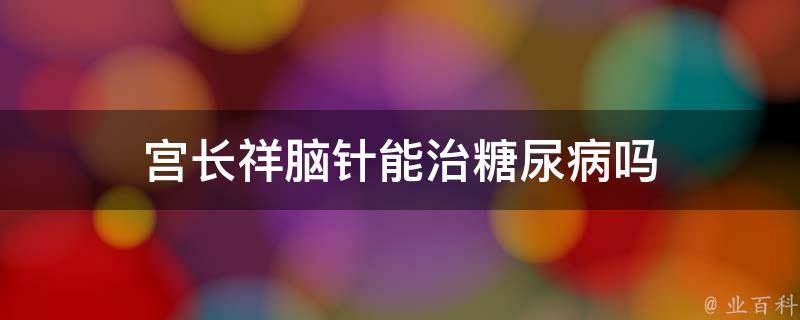 宫长祥脑针不能治疗糖尿病。宫长祥脑针是一种新型治疗方式,主要通过调整机体内的力学环境来改变神经的功能状态,具有创伤小、痛苦少、费用低、疗程短的特点。但是,它并不能治疗糖尿病。糖尿病是一种代谢性疾病,需要长期控制血糖以避免并发症。治疗糖尿病的主要方法是药物治疗、饮食控制和运动锻炼。