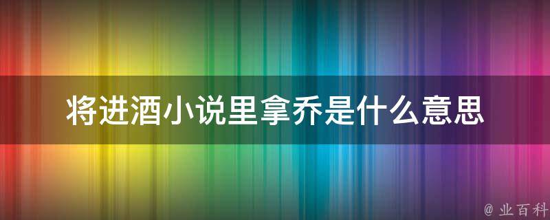 将进酒小说里拿乔的意思是指故作难色以自抬身价。《将进酒》是唐酒卿笔下的小说,讲述的是一个沉疴已久的朝代下,八大世家根深交错,各怀鬼胎。不服从命运的庶子沈兰舟和离北王二子萧驰野,蛰伏多年,一步一步推翻这个腐朽,达到自己愿望的故事。