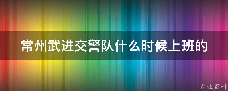 常州武进交警队上班时间:周一至周五上午8:30-11:30,下午14:00-17:00。交警队主要负责对道路交通管理工作进行指导和规划,对道路交通事故责任重新认定,对伤残程度进行重新评定、对车辆损失的程度进行重新鉴定等。