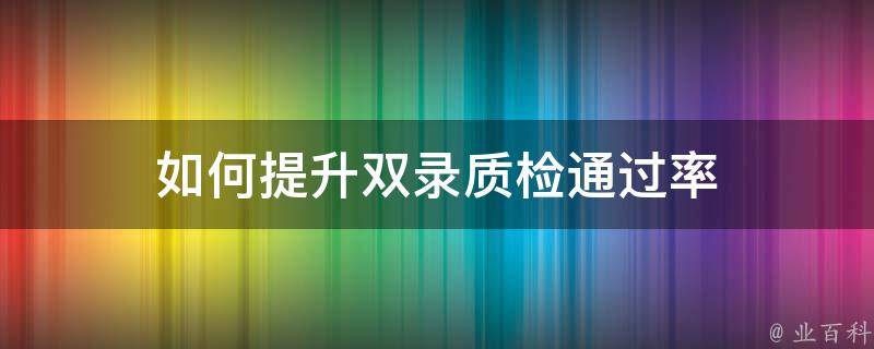 最佳答案可以通过加强培训、完善流程、优化服务等多种方式来提高双录质量,确保通过率。双录指的是银行在销售金融产品时,需要对整个过程进行录音和录像。双录质检则是录音和录像进行人工或智能的质检检测。随人工智能、云计算等信息技术的发展,大部分银行都采用了智能双录质检。