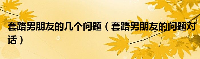 大家好,我是小科,我来为大家解答以上问题。套路男朋友的几个问题,套路男朋友的问题对话很多人还不知道,现在让我们一起来看看吧!