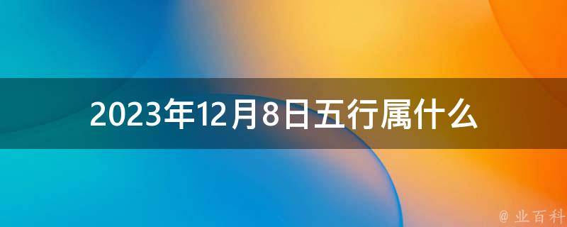 2023年12月8日的年五行是金箔金,月五行是海中金,日五行是壁上土。为人不愁吃喝、福禄有余,福气和财运用不完,有逢凶化吉之好运。一生平安、一世兴隆,但早年攒钱比较困难,虽然挣得多,但支出也多,随着年纪增长,运势会越来越好,晚景兴隆。