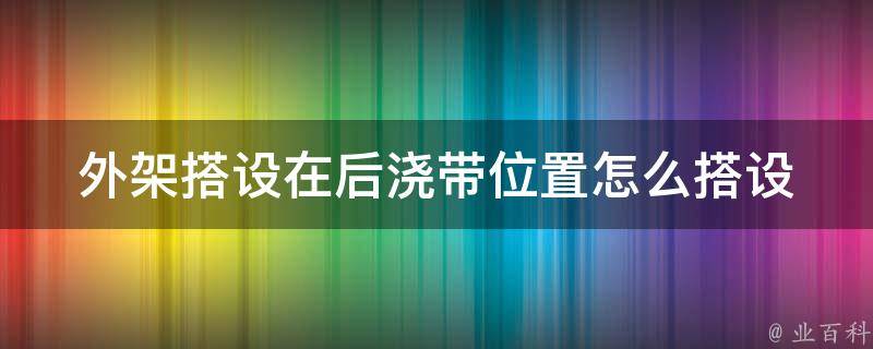 1、结构设计:首先需要进行结构设计,确保外架不会对后浇带造成额外负荷或影响其稳定性。可能需要使用加固措施,如增加支撑柱、加固钢管等。