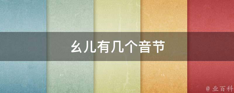 幺儿有2个音节。音节是语言中单个元音音素和辅音音素组合发音的最小语音单位,单个元音音素也可自成音节。汉语的音节是由声母和韵母相拼组成的语音单位,单个韵母也可自成音节。幺儿是汉语方言词汇,多见于西南官话区,指最小的儿子。