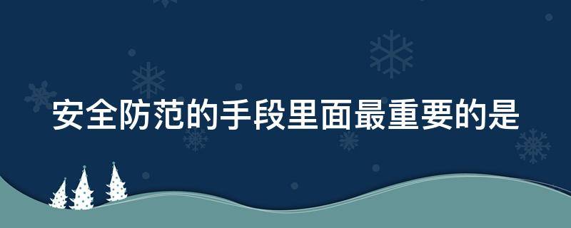 最佳答案安全防范的手段的每一种同样重要。安全防范是社会公共安全的一部分,安全防范行业是社会公共安全行业的一个分支。就防范手段而言,安全防范包括人力防范、实体防范和技术防范三个范畴。其中人力防范和实体防范是古已有之的传统防范手段,它们是安全防范的基础,随着科学技术的不断进步,这些传统的...
