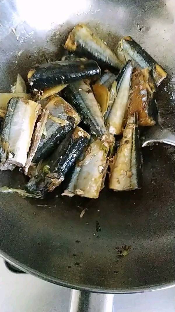 1、海鱼清理内脏,葱姜蒜爆锅,炒一下鱼。