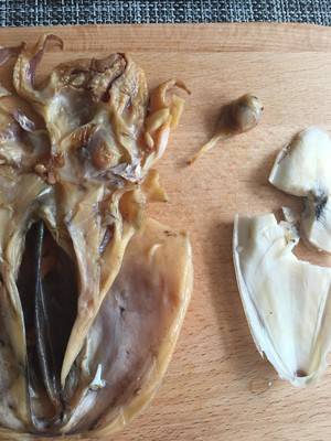 3、墨鱼泡好以后去骨和眼珠,清洗一下。