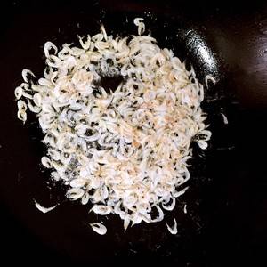 2、虾米洗净沥干水分,油热后放入锅中爆炒。