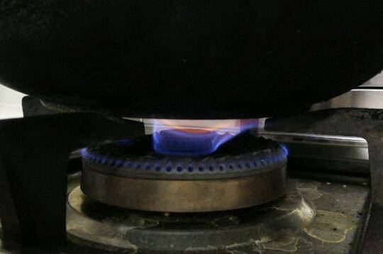 用小火一直不停的翻搅,当听到锅中不断有“啪啪啪”的声音时,芝麻的颜色也开始变黄,说明芝麻已经炒好。
