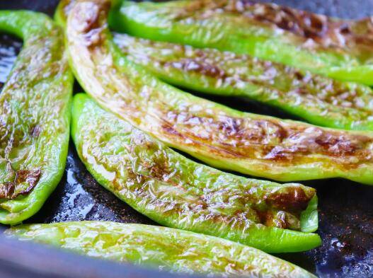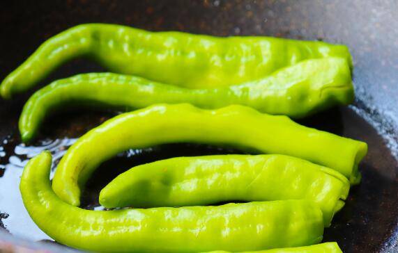 1、锅里放1勺油,青椒下锅煸炒,用锅铲不断挤压。