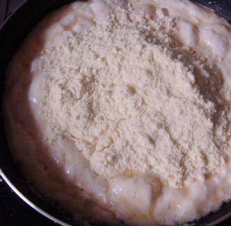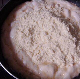 加入奶粉,搅拌成团。