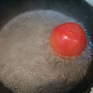 2、烧开水将番茄焯水,去皮切成丁。