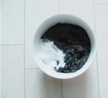 黑芝麻粉里放入糖和玉米油。