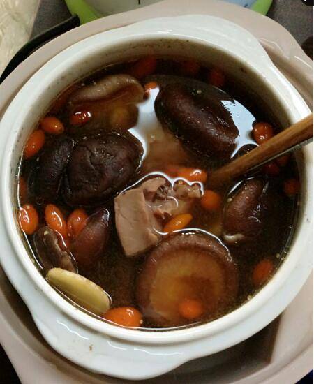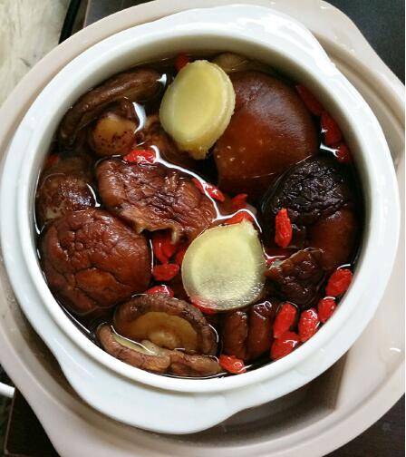 4、姜片、枸杞、香菇洗干净放在一旁备用。
