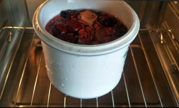 6、送入蒸烤箱中。蒸烤箱调蒸功能,时间两个小时,蒸好的汤加少许盐提味。
