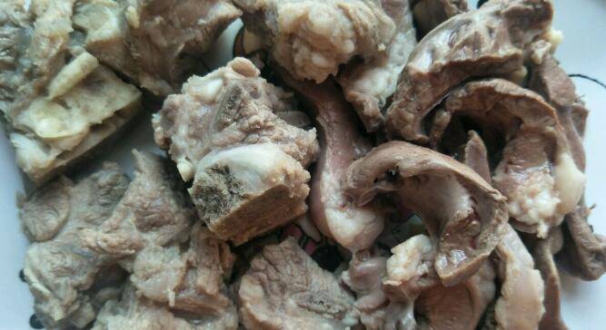 3、焯过水的猪尾骨头和猪心过凉水洗净血水。