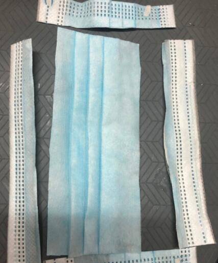 把口罩一周的边边剪掉,把口罩上端的金属片取出来。