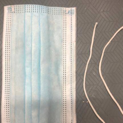 准备好口罩和剪刀,先把口罩的带子剪下来。