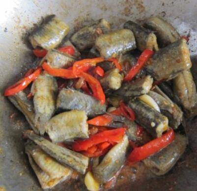 5、下泥鳅,加水、料酒、生抽、老抽和盐翻炒1分钟即可。