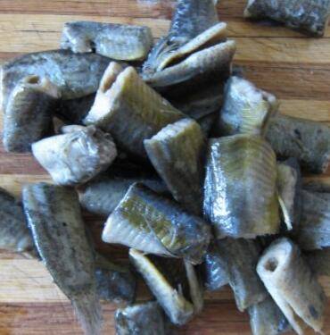 2、泥鳅鱼洗干净,不过活鱼很难弄得,先撒点盐,让它吐沫子把内脏清空,在切段,烧开水焯一下泥鳅鱼。