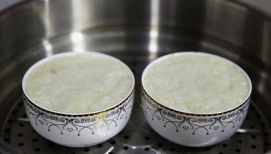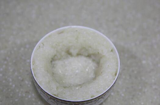 10、在边缘盖上糯米饭,中间留个圆形的窝。