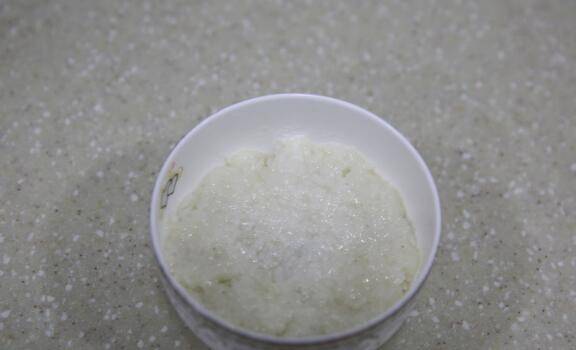 6、把猪油和糖放到热的糯米饭中抖匀。
