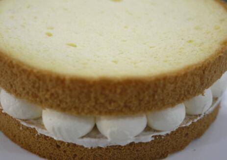 烤好的蛋糕取出,放在晾网上晾凉,然后脱模,把蛋糕平均分成3片。