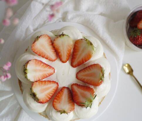 重复上一步,把蛋糕组装好,最后用草莓装饰蛋糕即可。