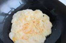 4、热锅凉油,加鸡蛋煎成鸡蛋块。