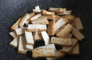 5、香干块煎至两面金黄。