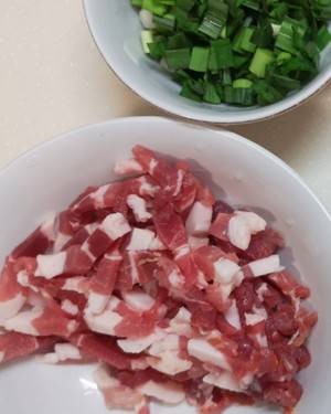 3、青蒜切细段。