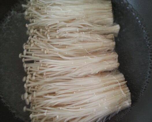 1、金针菇清洗掉根部的木屑后煮3-5分钟,彻底煮熟。