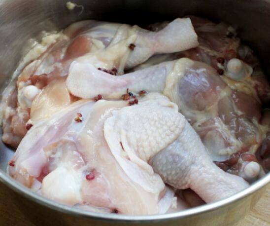 将鸡腿洗净撒些花椒和盐用手抓几下,腌一天。