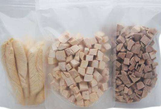 把切好鸡肉块放进食品冻干机仓内,关闭设备门,设置肉类冻干工艺