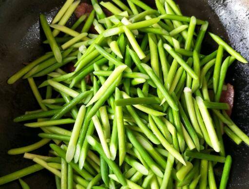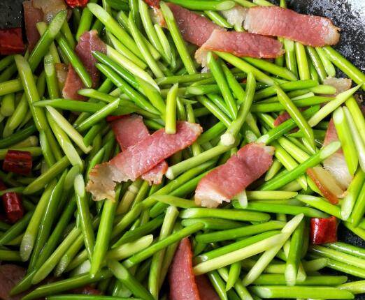 最佳答案腊肉200克、蒜苔300克、盐适量、干辣椒2-3个、鸡精适量、食用油。1、蒜苔处理,蒜苔洗好平放在菜板上,刀倾斜与菜板形成30度的夹角,下刀切蒜苔,使蒜苔切面口更大更容易入味。2、烧开水,加入适量的盐。把切好的蒜苔放入锅内过一下。3、过好后把蒜苔过一下凉水,这样会保持蒜苔颜色碧绿。4、腊肉切...