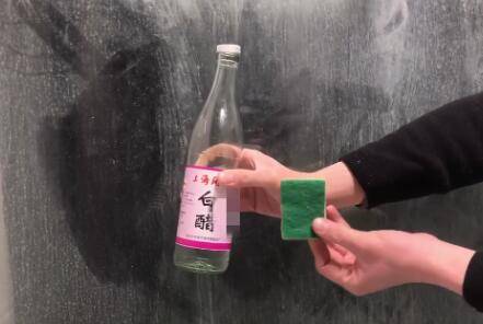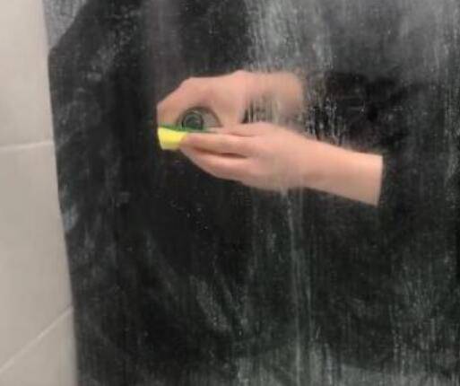 3、用蘸有白醋的百洁布对着玻璃上的白碱用力轻轻擦拭即可,所有有白碱的地方都要擦拭到位。用百洁布擦拭完毕后,静静等待5分钟,使醋酸能够有时间与白碱充分发生反应。