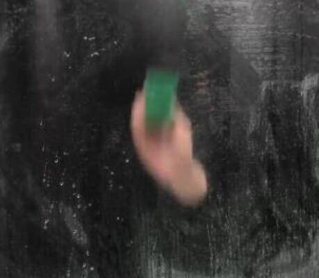 4、5分钟后,接着用纸巾对着玻璃上的长有白碱的地方进行反复来回地擦拭,直到所有的白碱都被擦拭干净。