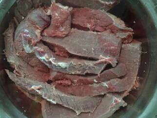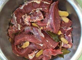 3、熬好的水倒入牛肉中,再加入生抽,盐翻拌均匀后腌制两晚,中间定期翻拌;