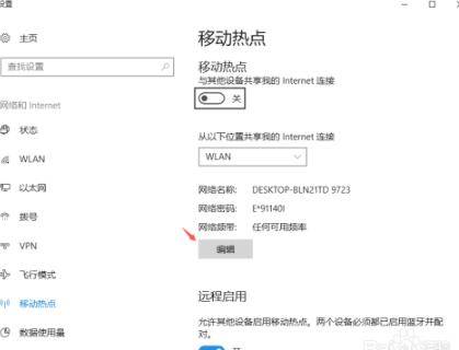 进入移动热点设置界面,点击编辑。