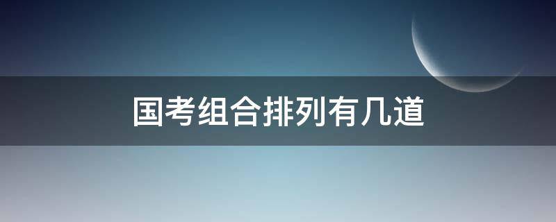 国考每年至少考1道组合排列题。国家公务员考试,简称国考,指中央、国家机关公务员考试,是国家部、委、署、总局招考在中央国家机关的工作人员的一种方式,招考条件相对比较严格,一般均要求全日制本科应届、历届毕业生,部分职位要求硕士研究生和英语四级、计算机二级。时间相对比较固定,一般集中在每年10-11月份。国家公务员,即依法履行公职、纳入国家行政编制、由国家财政负担工资福利的工作人员。中国公务员正规统一都叫国家公务员,不管是中央还是地方都是国家公务员。