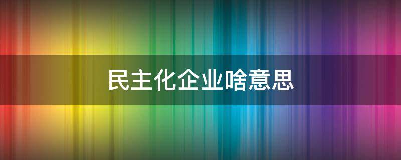 民主化企业意思是企业的经营管理采取民主方式。强化意识企业民主化管理的实施与推进,其核心和根本在于企业管理层和领导者的重视程度与整体意识。在企业管理中,许多的优秀企业结合自身的特点,采取一系列的先进管理措施,取得了成功的经验,并在长期的运行中形成契合实效的独特模式。