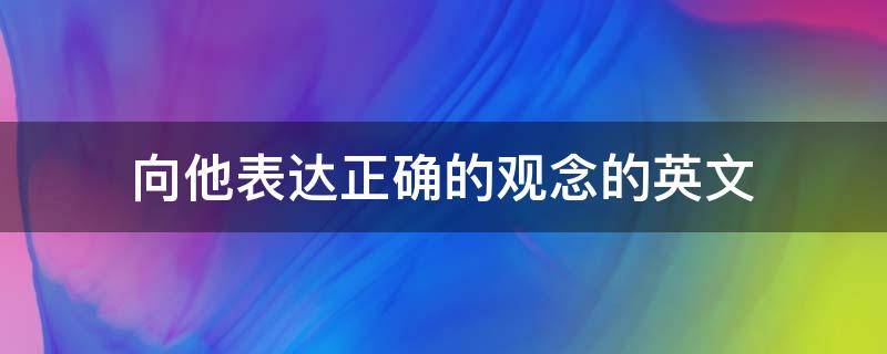 向他表达正确的观念的英文是:Express correct ideas to him。英语是一种西日耳曼语支,最早被中世纪的英国使用,并因其广阔的殖民地而成为世界使用面积最广的语言。英国人的祖先盎格鲁部落是后来迁移到大不列颠岛地区的日耳曼部落之一,称为英格兰。这两个名字都来自波罗的海半岛的Anglia。该语言与弗里斯兰语和下撒克森语密切相关,其词汇受到其他日耳曼语系语言的影响,尤其是北欧语(北日耳曼语),并在很大程度上由拉丁文和法文撰写。
