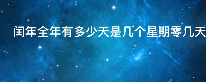 有366天。全年是52周零2天。闰年是为了弥补因人为历法规定造成的年度天数与地球实际公转周期的时间差而设立的。补上时间差的年份为闰年。与平年相比2月份多一天,是29天。