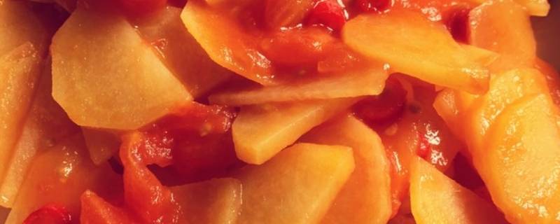 2、番茄用开水浸泡剥皮,土豆切片泡水。