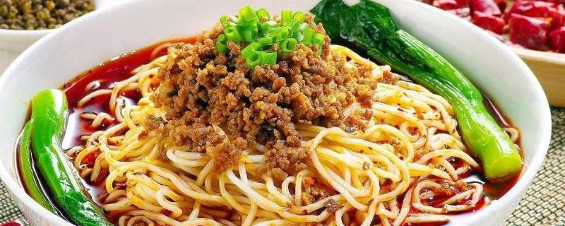 1、担担面:成菜面条细薄,卤汁酥香,咸鲜微辣,香气扑鼻,十分入味。 担担面是四川小吃中的代表性食物,为人们品尝四川小吃时的必备佳肴。如今担担面已遍布各地,虽做法有些许不同,但因其美味受到各地人民的喜爱,已成为一种家常美食小吃。